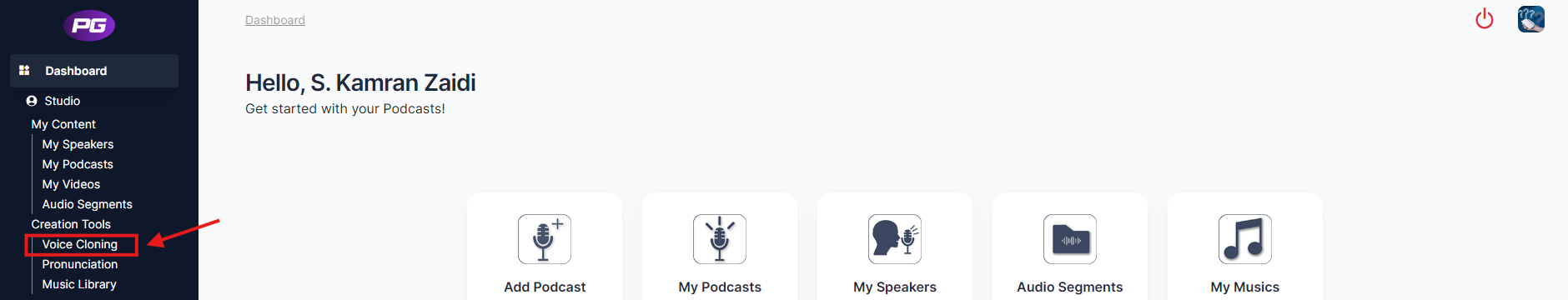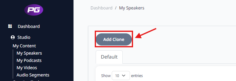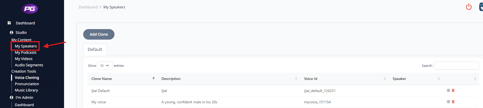 - Now click onSubmit, your cloned voice has been added as a speaker now you can use the speaker in your podcast.