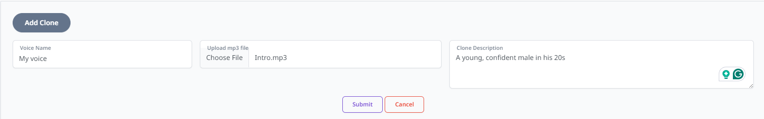 - Upload MP3 of the voice you want to clone, the file size must be under 5MB